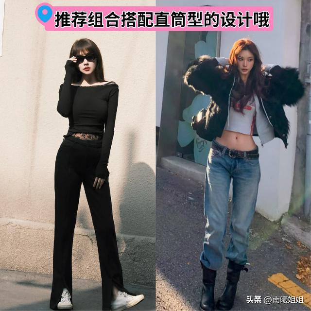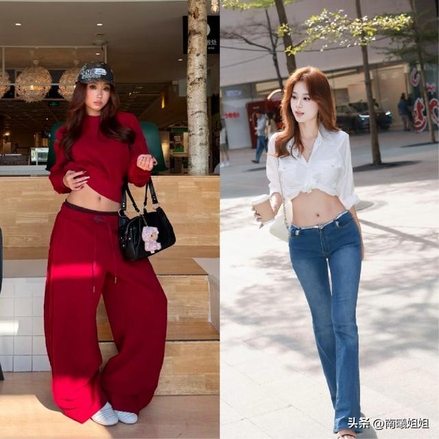 而且像这种露脐装的搭配,也建议大家可以优先于选择直筒,又或者是比较贴合于我们身形状态的设计,身形有小赘肉的女性而言,可以将直筒的搭配来进行优选,后者很适合曲线本身就很纤细又好看的女性搭配,展现出来的效果真的是可以强调和优化我们整个上半部分的线条走向的。