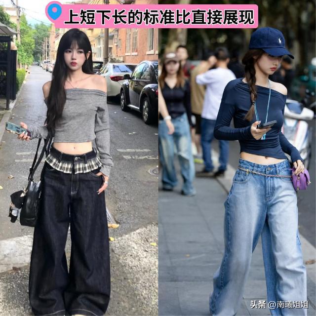 ㈡ 短款露脐装搭配,将标准比例衬显吧