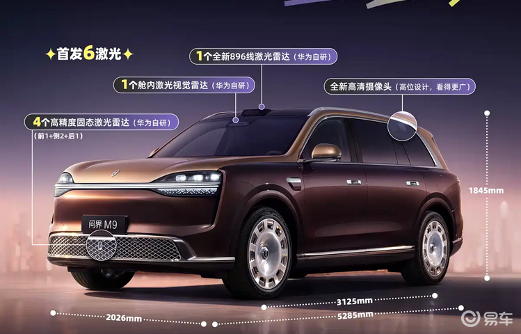 尺寸方面,新款问界M9的长宽高分别为5285mm、2026mm、1845mm,轴距达到3125mm。外观上,新车采用了新配色、半隐藏式门把手、一体式贯穿灯以及新轮圈造型,其中门把手使用了与尊界S800同款的星光设计。
